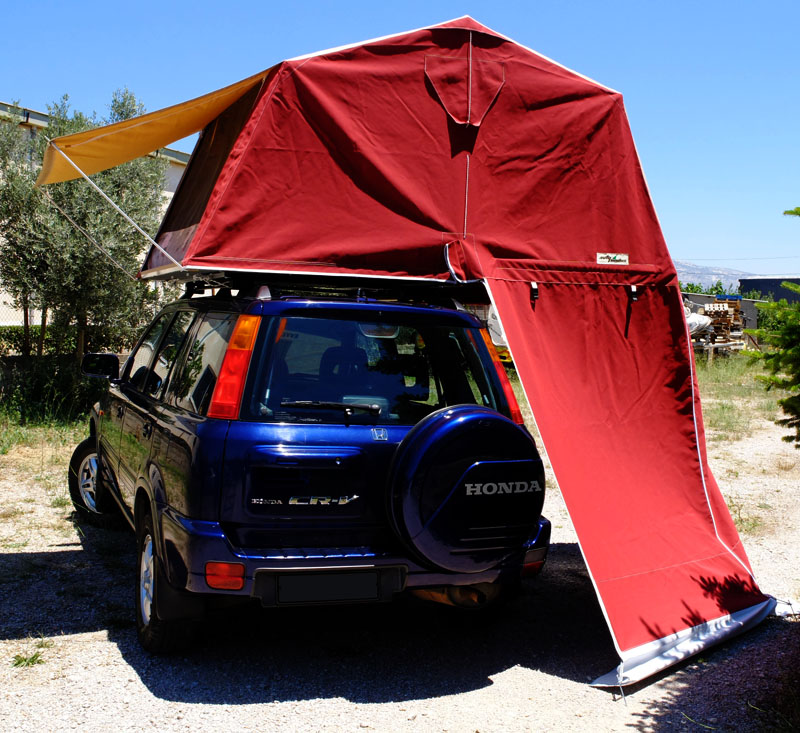 Οροφοσκηνή για εφαρμογή σε μπάρες οροφής αυτοκινήτου με προσθήκη παραπετασμάτων σκίασης.